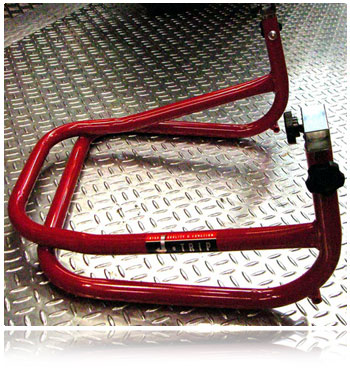 ハヤブサはセンタースタンドがないので、レーシングスタンドを使えば車体が安定して真っ直ぐに立ち、