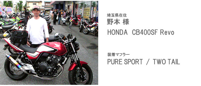 埼玉県鴻巣市在住 S.K 様 ■愛車 HONDA CB400SF Revo ■装着マフラー PURE SPORT one tail カーボンサイレンサー(楕円) |