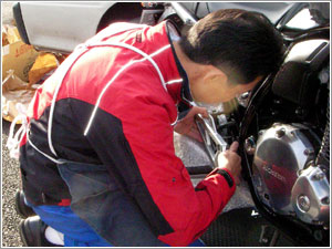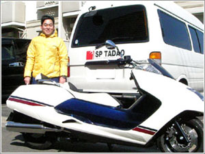 | S.K様からのご感想 | SP忠男のマフラーは初めての購入です。 最初はノーマルマフラーも引きとってもらおうと思っていたのですが、今後のことも考えて保管することにしました。 Hobbyの独特な2本だしは他に無くて一目惚れでした。 目玉のエンブレムもSP忠男らしくて良いですね! 仕事は夜勤があるので時々バイクも使いますが、通勤はもっぱら車です。 ここ(S.K様のお住まいの周り)は、伊良湖岬なんかのツーリングスポットが多く点在しているのも楽しめますね。 これから早速走ってきます! ※私・木川を見送りながら、早速走りにお出かけになりました。 |